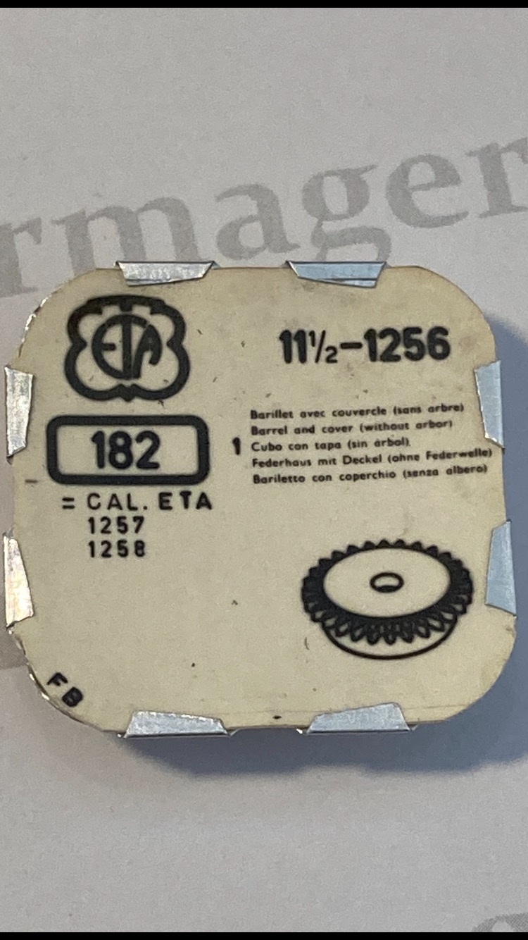 ETA Cal. 1256 part 182. Barrel Drum & Cover. NOS. Fits for cal. 1257 & 1258.