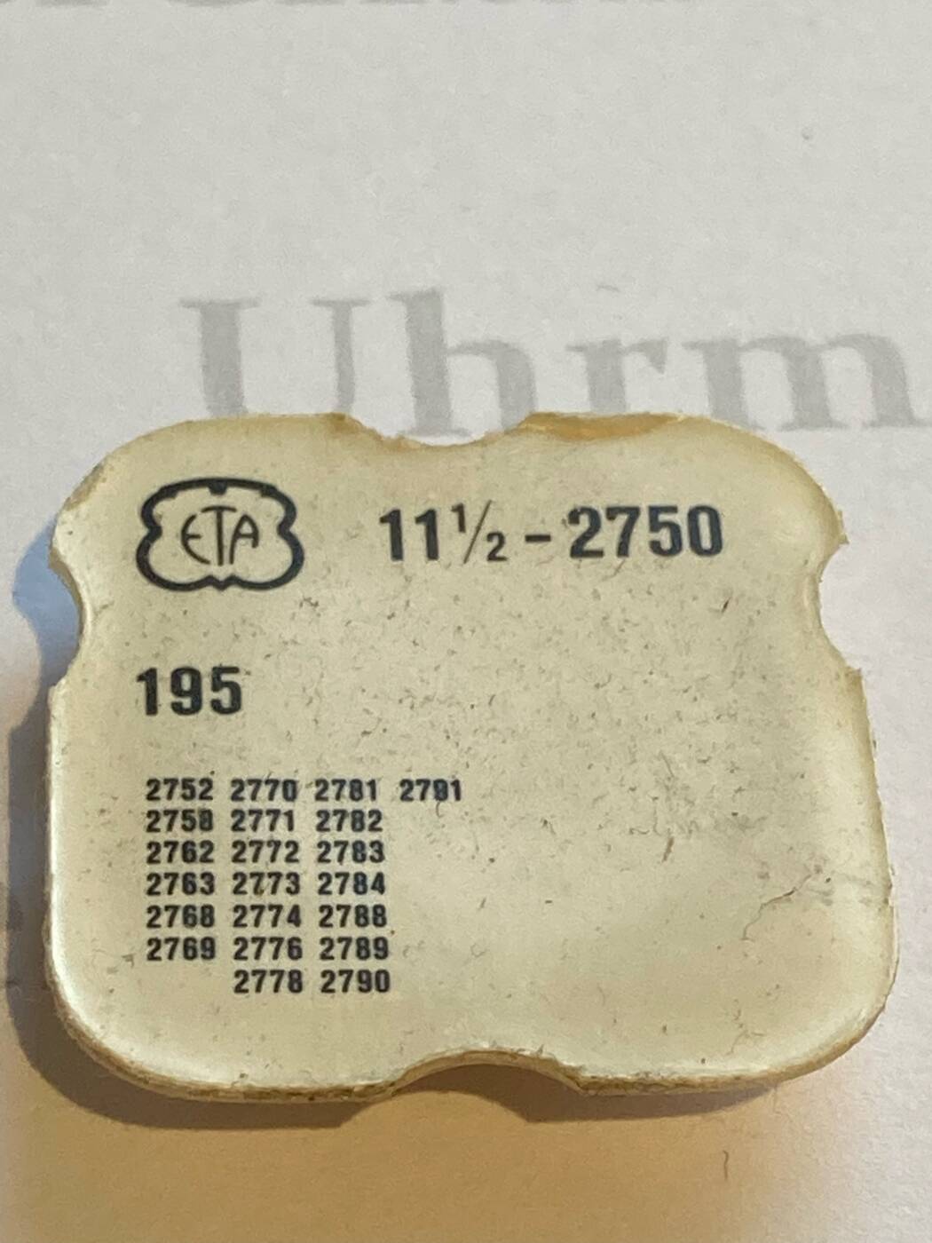 ETA Cal. 2750 part 195. Barrel Arbor. NOS. Fits for cal: 2752, 2758, 2762, 2763, 2768, 2769, 2770, 2771, 2772, 2773, 2774, 2776, 2778, 2781, 2782, 2783, 2784, 2788, 2789, 2790, 2791.