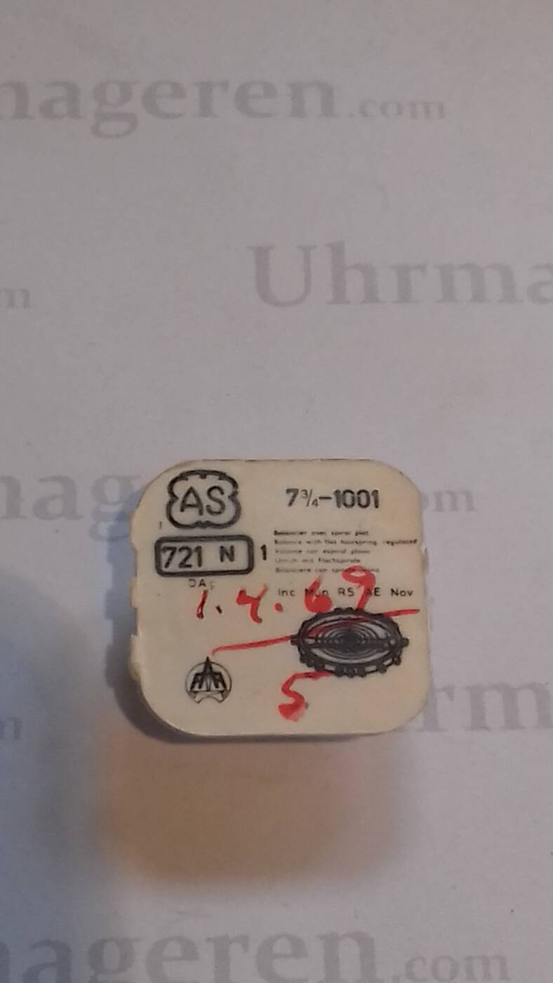 AS Cal. 1001 – 721. Balance with flat hairspring, regulated. NOS.