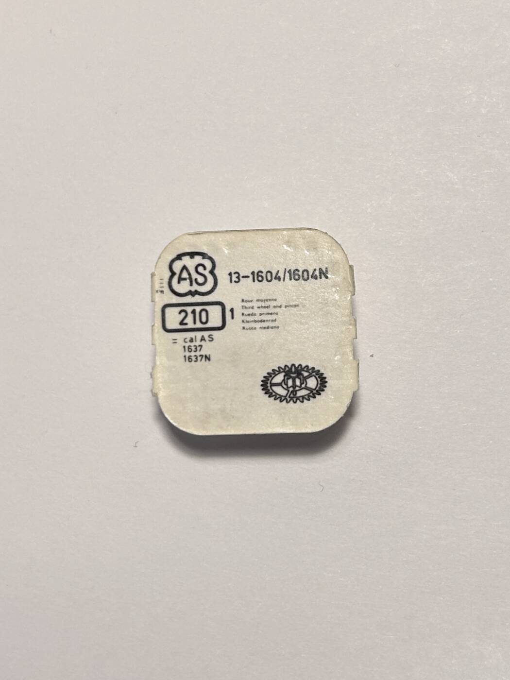 AS Cal 1604-210, Third wheel and pinion. NOS Also fits cal 1637, 1637N the original packaging is not always simular but the product is