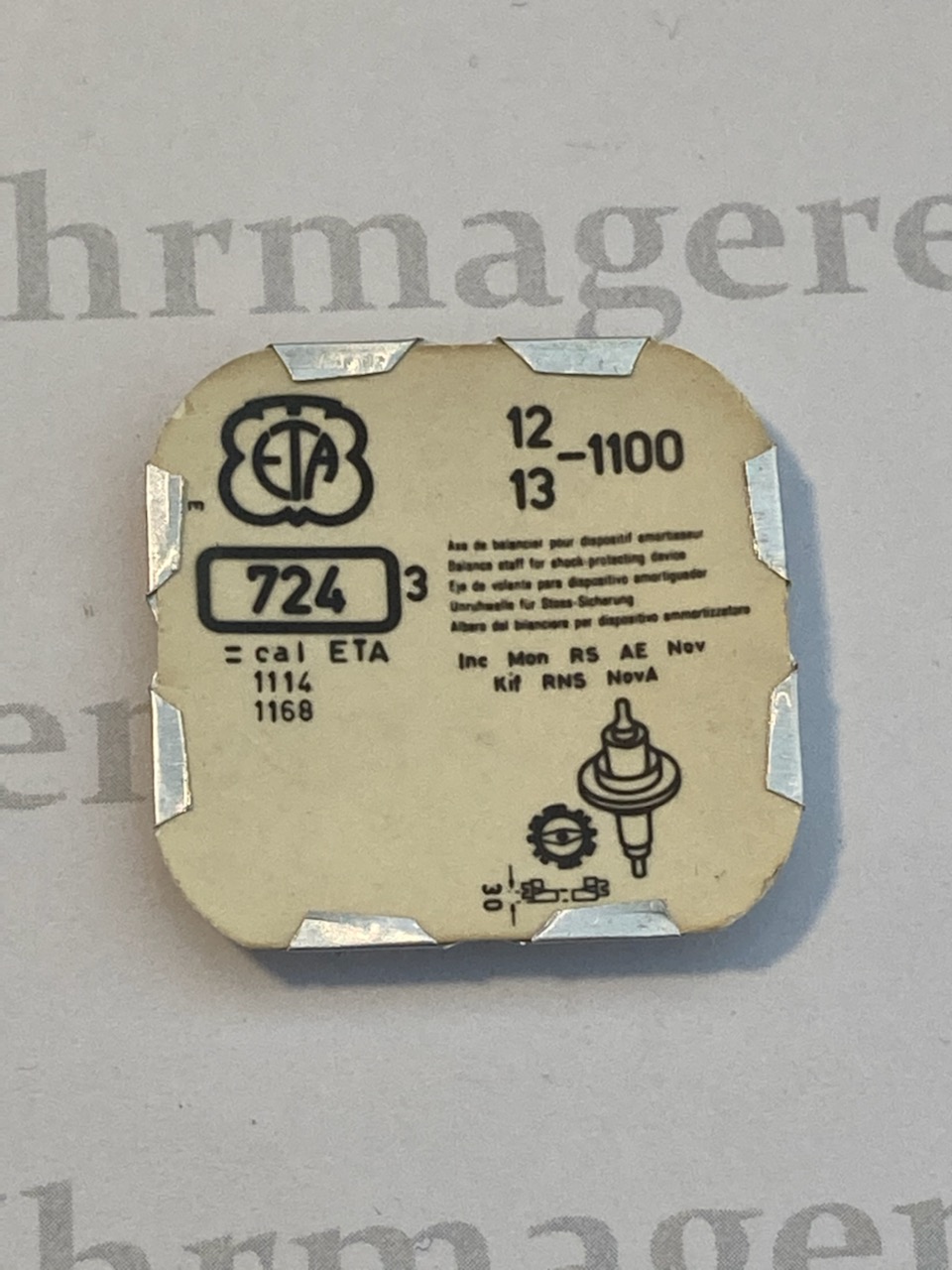 ETA Cal. 1100 part 724. Balance Staff Inca. NOS. Fits for cal. 1114 & 1168.