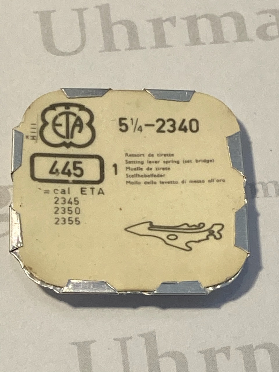 ETA Cal. 2340 part 445. Setting Lever Spring. NOS. Fits for cal. 2345,2350 & 2355.