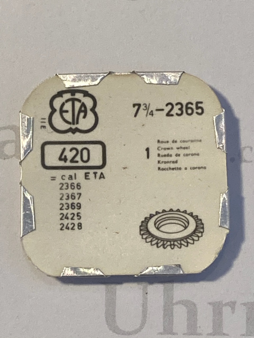 ETA Cal. 2365 – 420. Crown Wheel, Top. NOS. antal