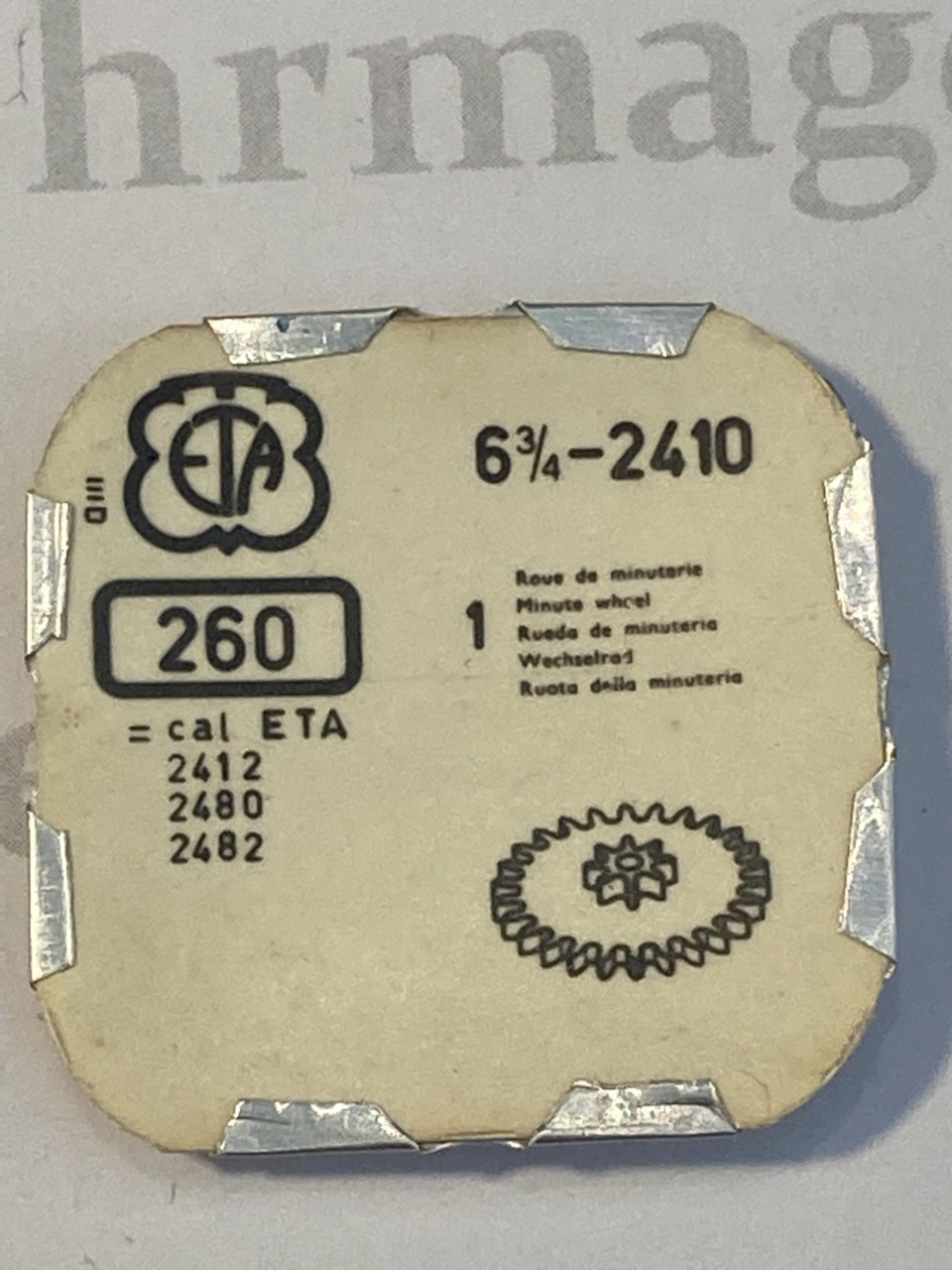 ETA Cal. 2410 part 260. Minute Wheel. NOS. Fits for cal: 2412, 2480, 2482,