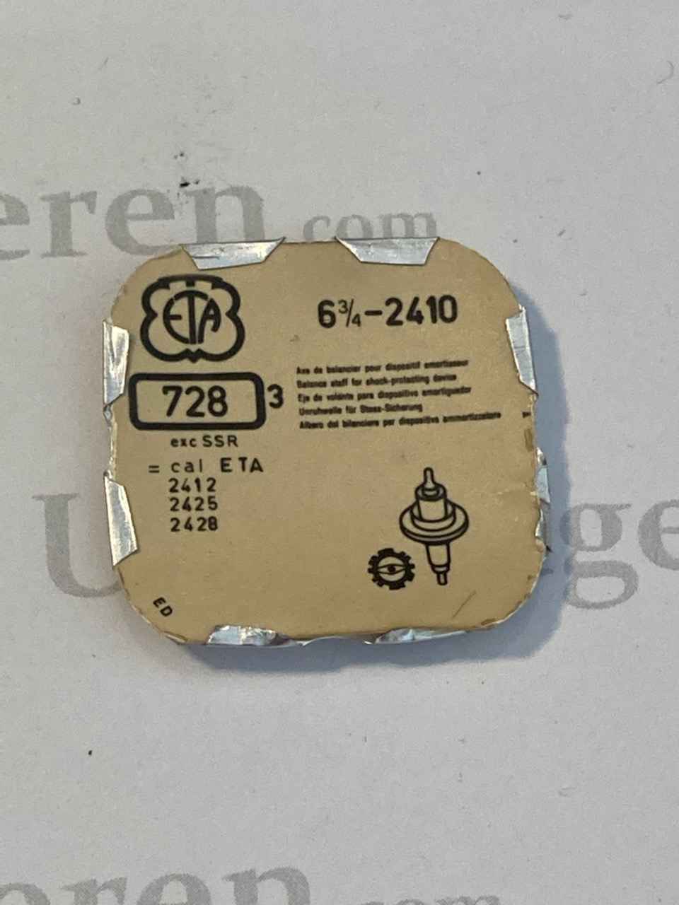 ETA Cal. 2410 part 728. Balance staff. NOS. Fits for cal: 2412, 2425 & 2428,