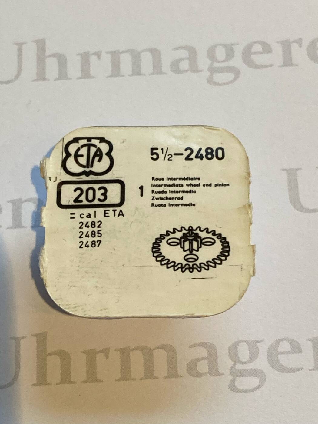 ETA Cal. 2480 part 203. Intermediate Train Wheel. NOS. Fits for cal. 2482, 2485 & 2487.
