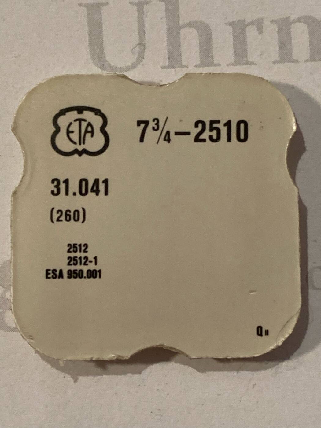 ETA Cal. 2510 part 260. Minute Wheel. NOS. Fits for cal: 2512, 2512-1.