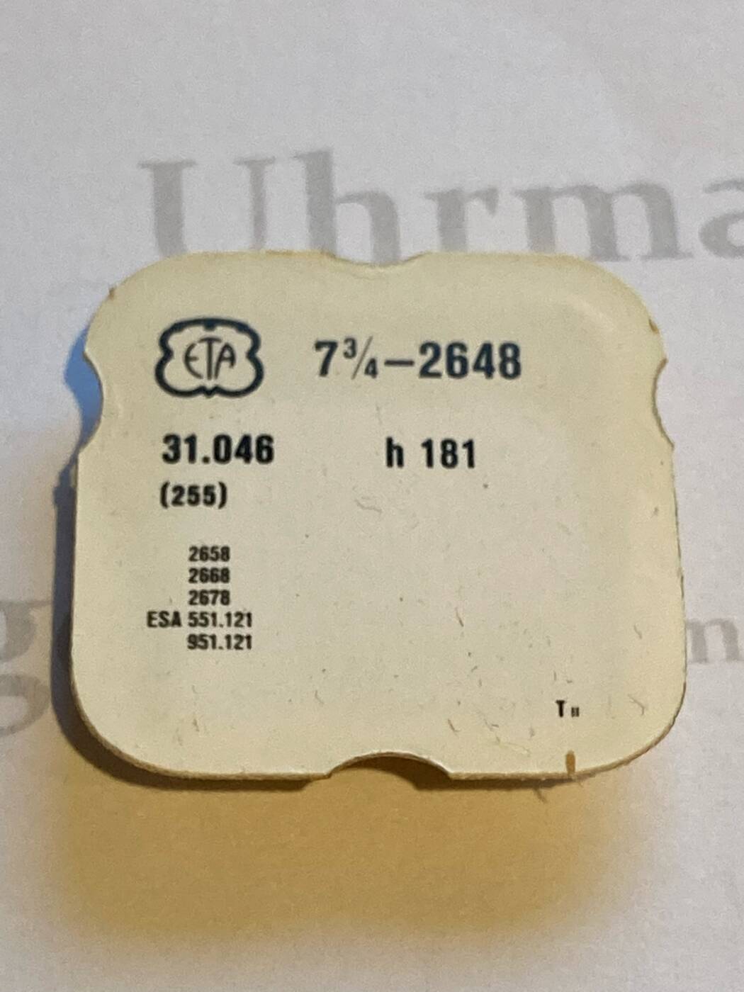 ETA Cal. 2648 – 255. Hour Wheel Height 1.81mm. NOS.