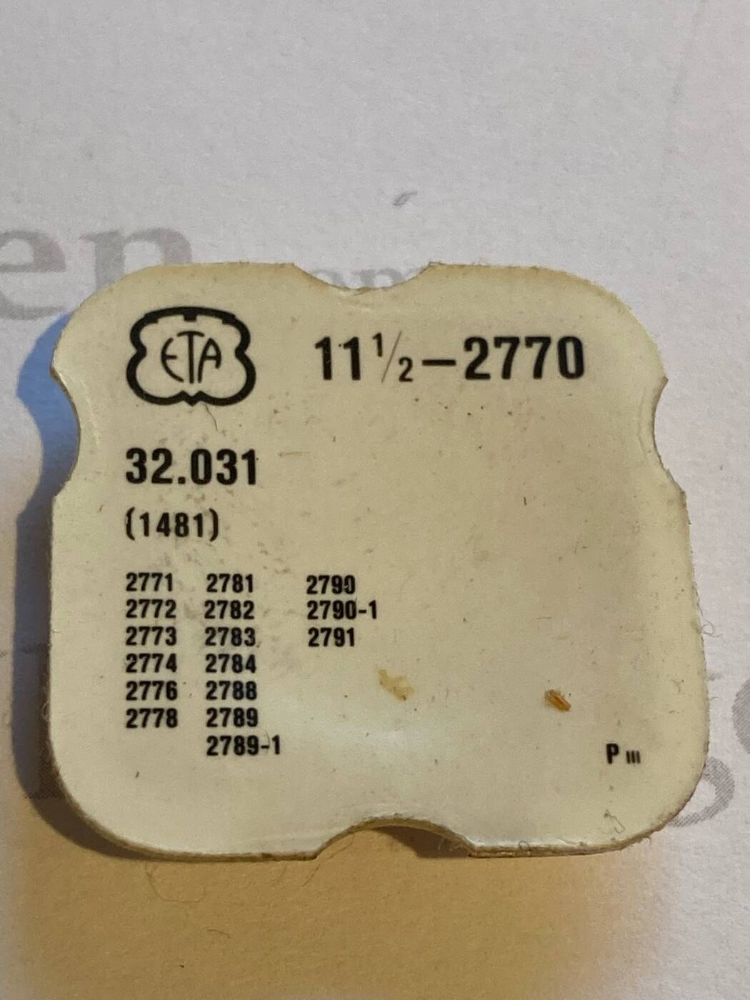 ETA Cal. 2770 part 1481. Automatic Reduction Wheel. NOS. Fits for cal: 2771, 2772, 2773, 2774, 2776, 2778 2781, 2782, 2783, 2784, 2788, 2789, 2789-1, 2790, 2790-1, 2791.