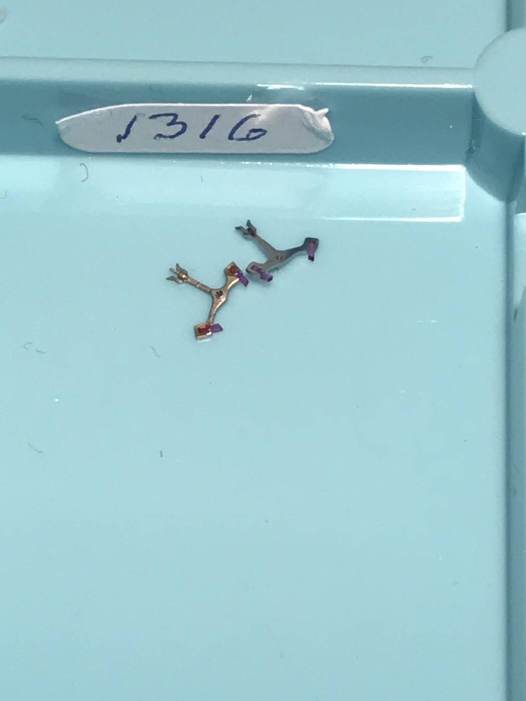 OMEGA 550-1316 Jewelled pallet fork and staff OMEGA original parts in very good used condition Fits cal. 550, 551, 552, 560, 561, 562, 563, 564, 565, 600, 601, 602, 610, 611, 613, 750, 751, 752   1f13